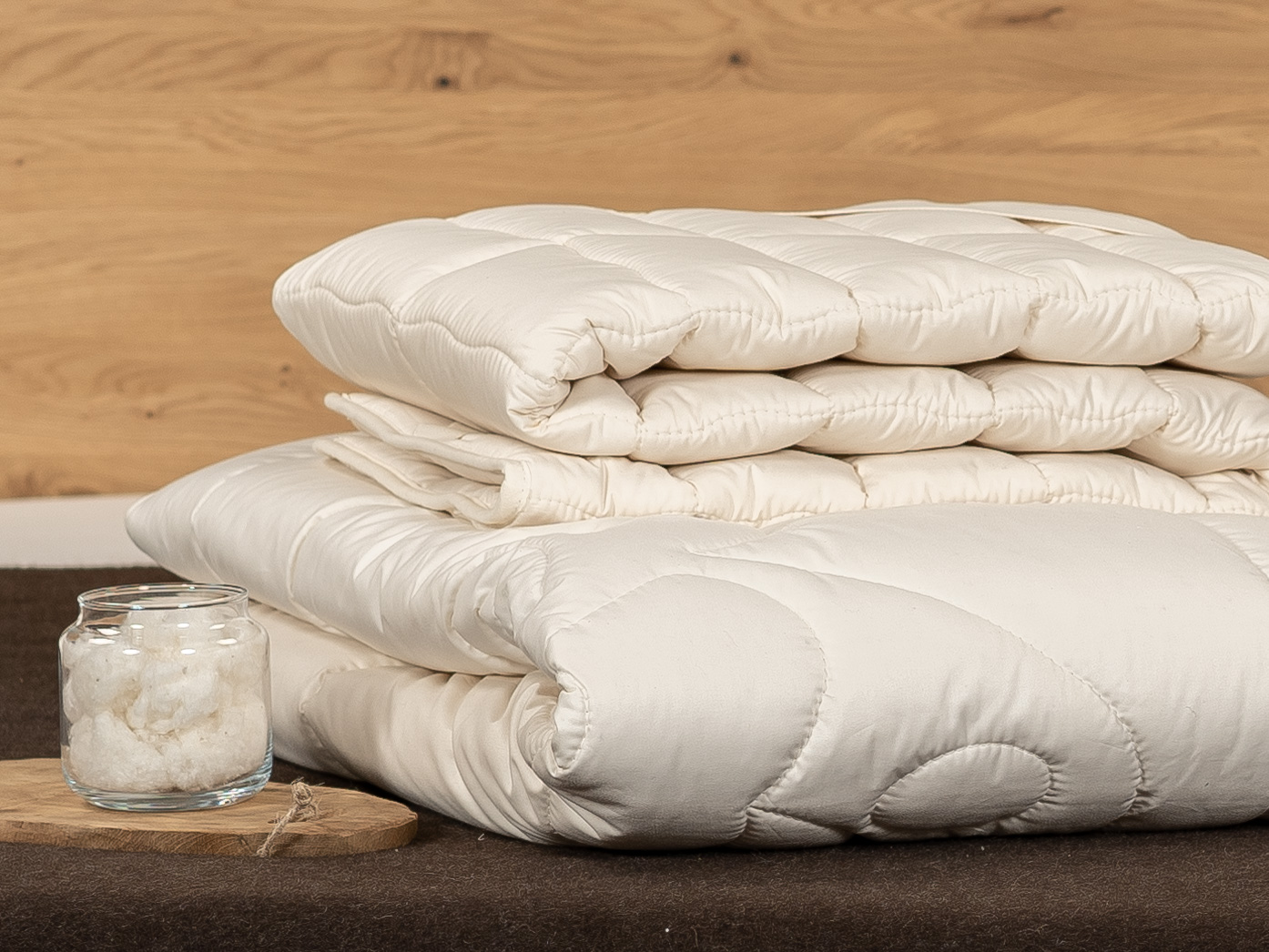 Natürliche Bettwaren für unsere Jüngsten! Unser edles Kinderbettwaren-Set, bestehend aus einer Steppdecke, einer Matratzenauflage sowie einem flachen Kissen, bietet alles, was Ihr Kind zum Wohlfühlen braucht. Sie können zwischen einer leichten Sommerdecke (Einlage 500 g) oder einer Duodecke (Einlage 800 g) für die kühlere Jahreszeit wählen. Die Duo-Variante besteht aus 2 miteinander verbundenen Decken und bietet Ihrem Liebling ein herrlich-wohliges Schlafgefühl. Die Baumwolle dieser Produkte stammt aus kontrolliert biologischem Anbau (kbA). – Guter Schlaf von Anfang an, das ist der Grundgedanke von LaModula!