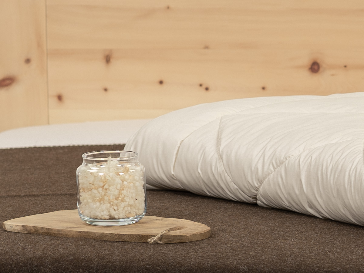 Schlafen Sie mit der wohltuenden Wirkung der Zirbe. Gefüllt mit Zirbenflocken und feiner Schafschurwolle (kbT) bringt unsere „Zirbendecke“ Natur in Ihr Heim. Das von LaModula verwendete Zirbenholz ist aus nachhaltiger europäischer Forstwirtschaft. Die Kombination aus wärmender Schafschurwolle aus kontrolliert biologischer Tierhaltung (kbT) und Zirbenholzflocken verleiht Ihrem Schlafzimmer ein natürliches Raumklima.
