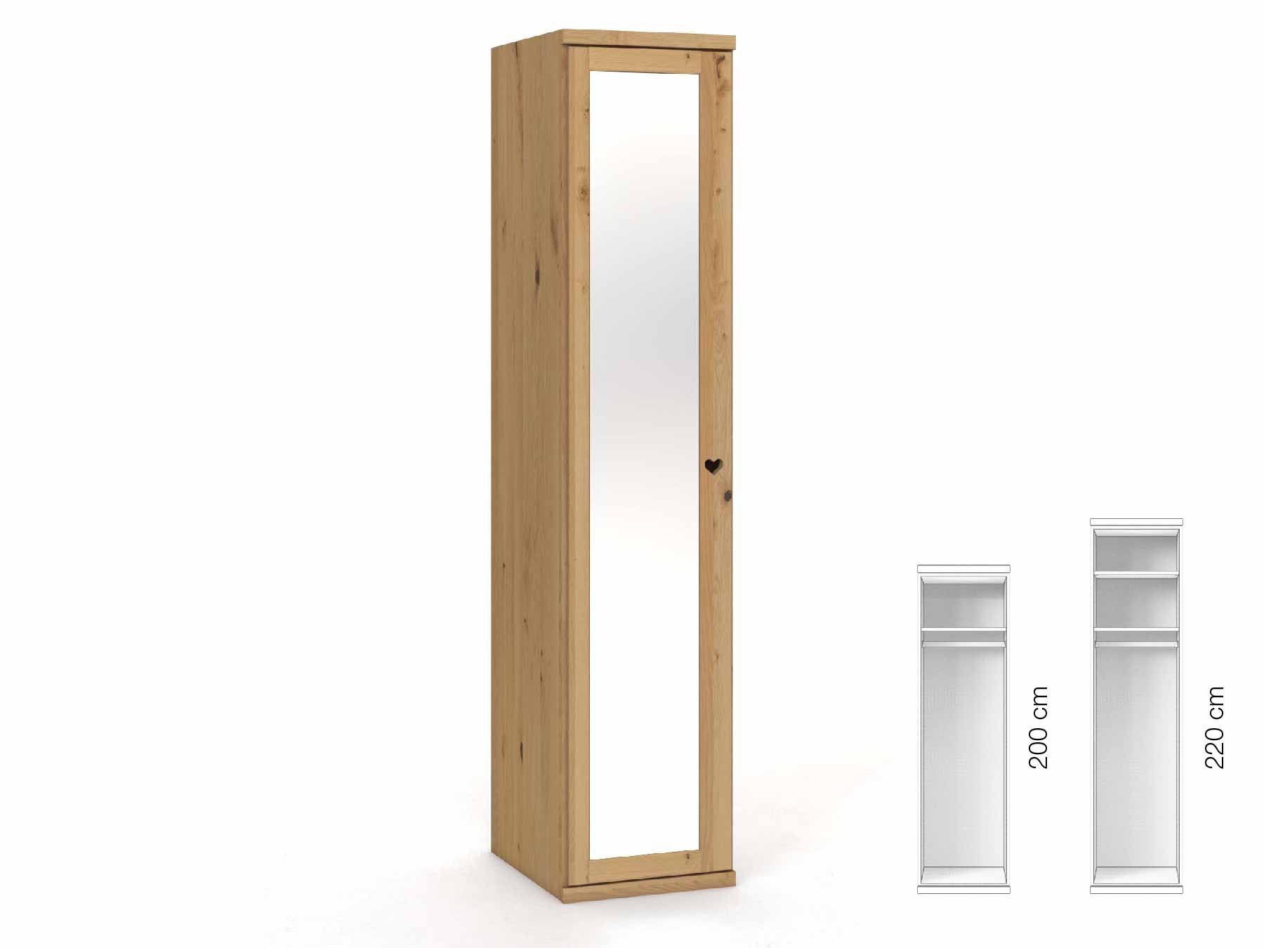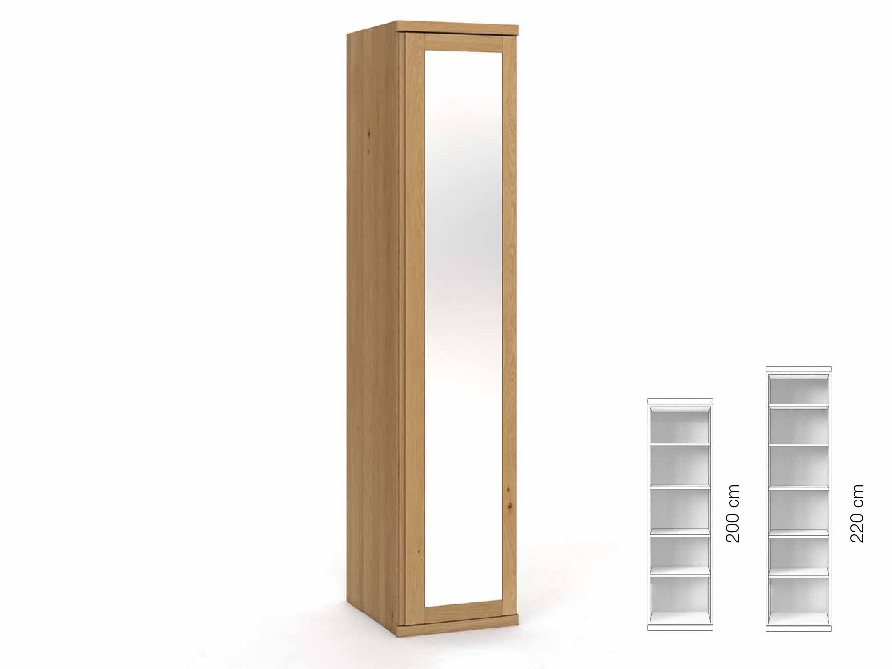 Ein Schrank, der sich in jeden Raum einfügt: Der schlanke Korpus von „Sandra“ integriert sich harmonisch in Ihr Zuhause und bietet reichlich Stauraum. Höhenverstellbare Fachböden gehören zur Innenausstattung selbstverständlich dazu! Zudem haben Sie die Wahl zwischen einer Kleiderstange oder praktischen Schubladeneinsätzen. Spiegeltüren verleihen dem Schrank nicht nur eine edle Optik, sondern lassen den Raum auch größer wirken. Gefertigt aus massivem Vollholz, trägt er zu einem angenehmen Wohnklima bei, indem das natürliche Material Feuchtigkeit aufnimmt und wieder abgibt. So können Sie Ihren neuen Drehtürenschrank ganz in Ruhe einräumen. Wählen Sie aus verschiedenen Höhen und Griffvarianten – für noch mehr Individualität in Ihrem Schlafzimmer!