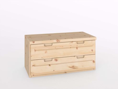 Auch die Einsatzmöglichkeiten für Ihr Sideboard als Kommode sind unbegrenzt: Dank zwei Schubladen mit einer Tiefe von rund 39 cm bieten die Stellmöbel perfekten Stauraum für alles, was Sie vor Staub schützen oder außer Sichtweite aufräumen möchten. Egal ob Kabel und sonstiges elektronisches Zubehör, kuschelige Decken für das Wohnzimmer oder Bettwaren für das Schlafzimmer – Platz bietet das Massivholz-Sideboard genug!