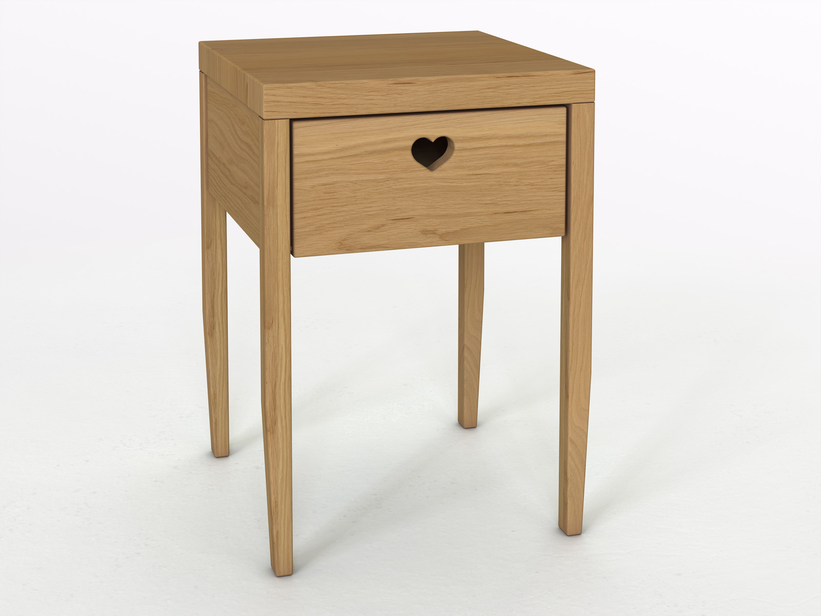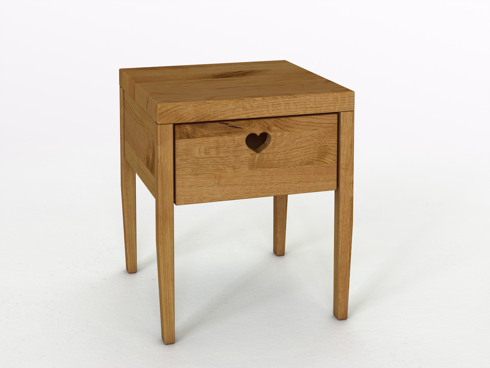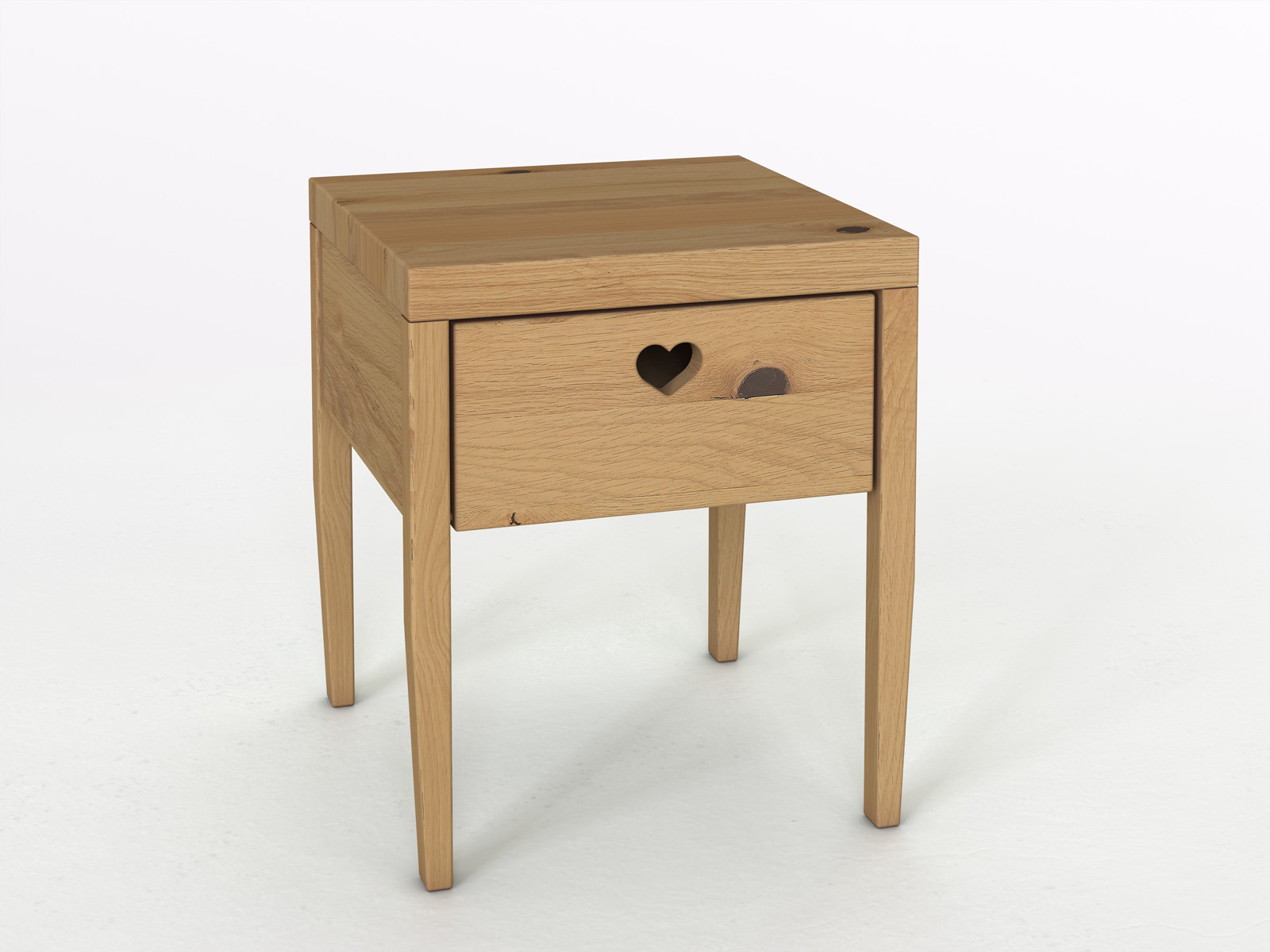 Schlicht, praktisch und mit aller Herzlichkeit – so beschreiben wir „Heidi“ am liebsten. Die klare, hochbeinige Form passt zu einem reduzierten Wohnstil. Das herzförmig gefräste Griffloch verleiht diesem Nachtkästchen einen gewissen Aha-Effekt. Wenn wir ehrlich sind, haben wir es gerade darauf angelegt! Wie alle unsere Möbel erfährt auch „Heidi“ ein seidiges von Hand geschliffenes Oberflächen-Finish.