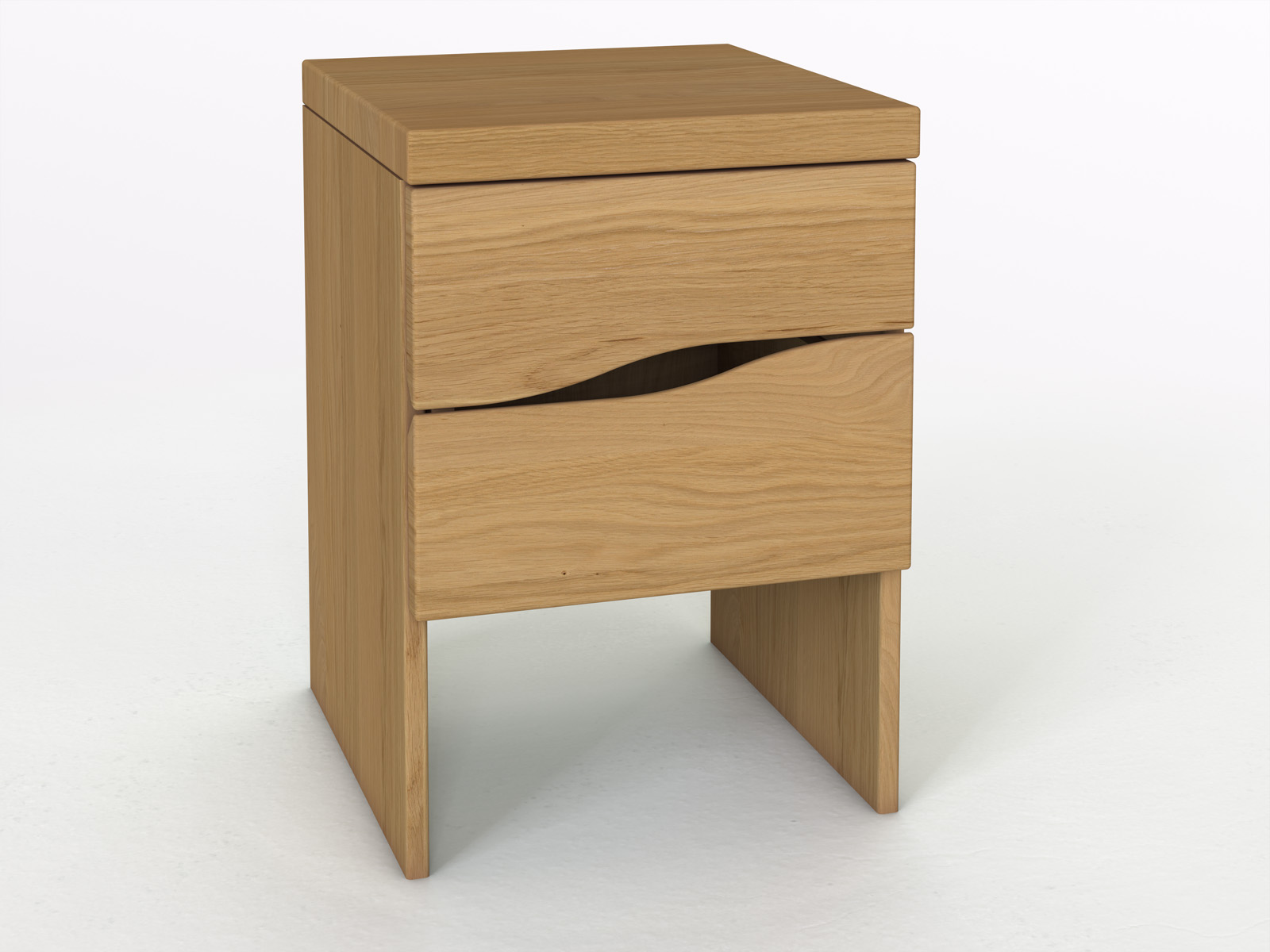 Das Nachttischkästchen „Astrid“ stellt modernen Schwung und außergewöhnliche Qualität dar. Die Oberfläche ist von Hand seidig-fein geschliffen und mit hochwertigem, pflanzlichem Öl behandelt. Wählen Sie zwischen einer metallfreien Ausführung oder einer Ausführung mit Stop-Control-Auszügen.