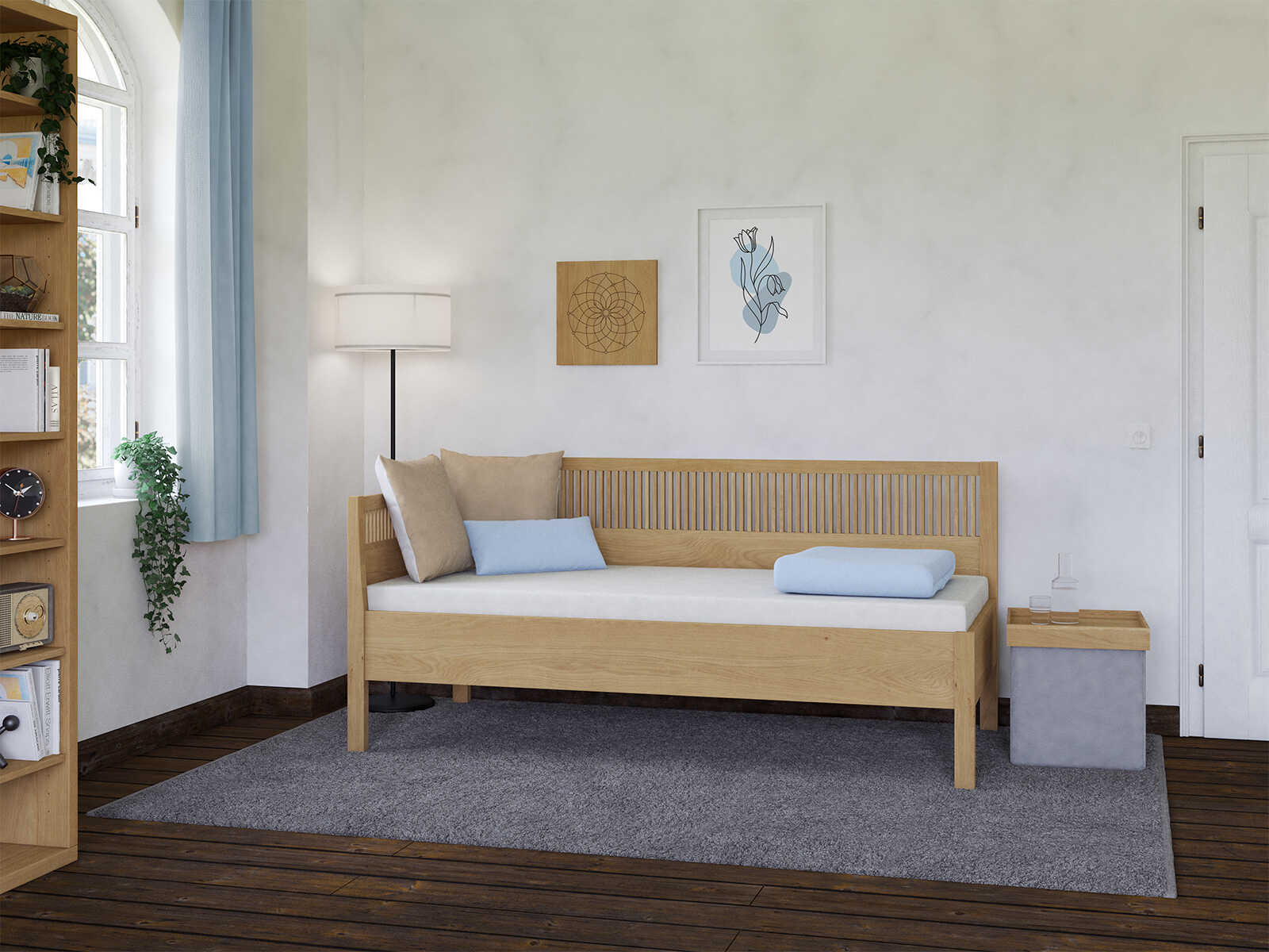 Nicht nur Kinder lieben die Geborgenheit, wenn sie vom warmen Massivholz umgeben sind. Unser Massivholzsofa „Julia“ besitzt eine Liegefläche wie ein Bett, optisch kann es als Sofa gestaltet werden. Ein wohnliches Möbel für den Tag und ein wunderbares Massivholzbett für die Nacht. „Julia“ ist im Erscheinungsbild flexibel. Die Armlehnen können Sie wie folgt wählen: Auf beiden Seiten, nur auf einer Seite oder gar keine, wie es Ihnen am besten gefällt.