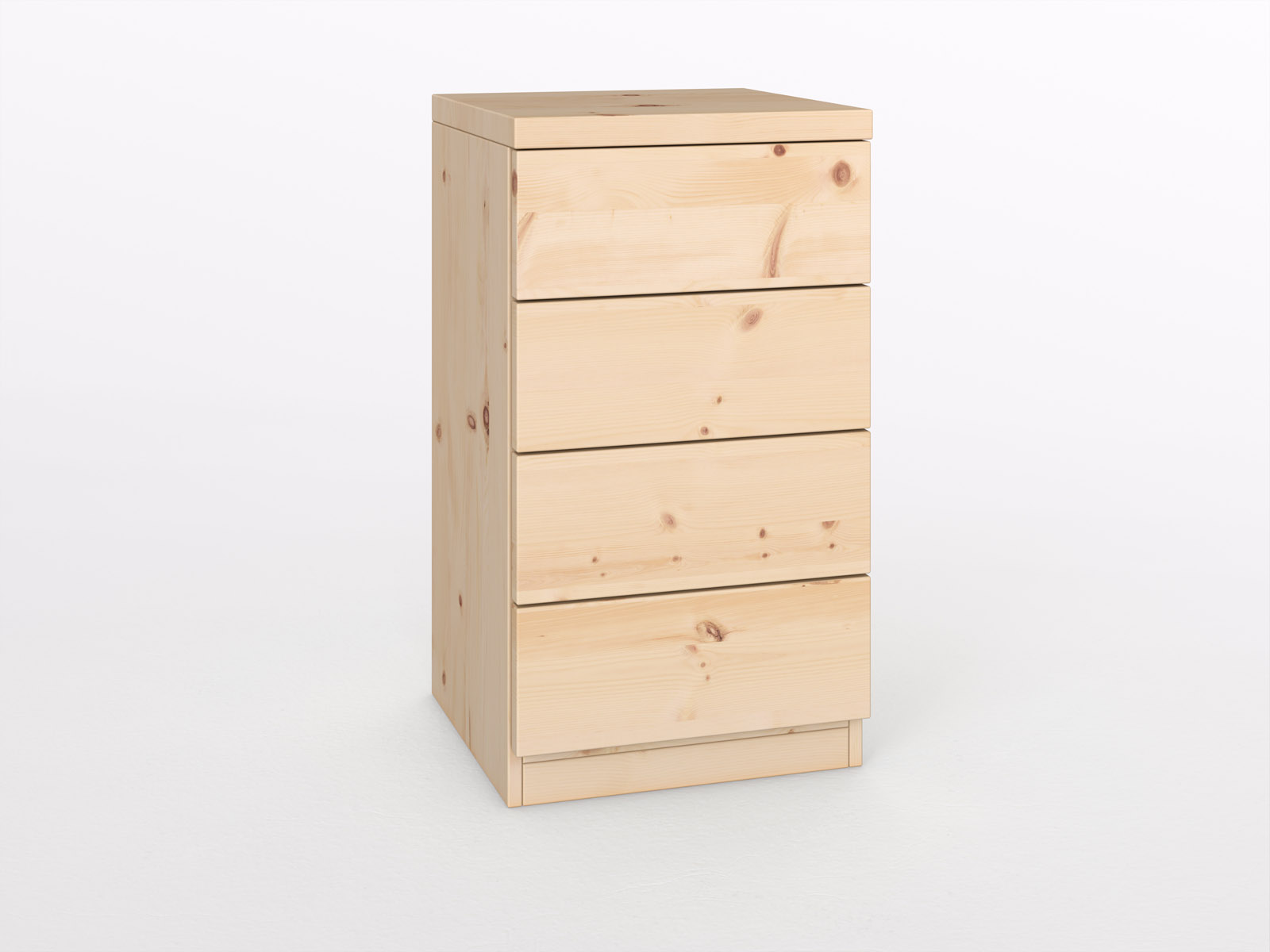 Elegant und grifflos mit TIP-ON Auszug. „Timon“ hinterlässt einen ordentlichen Eindruck im Schlafzimmer. In 3 verschiedenen Ausführungen mit Tür, Laden oder einer Kombination aus Tür und Laden erhältlich, ist diese Zirbenkommode eine praktische und charmante Abstellfläche für Ihre Lieblingsdinge. Sie bietet auch bei 50 cm Breite viel Stauraum und ein duftendes Zirbenaroma. Zarter Kanteradius von 3 mm.