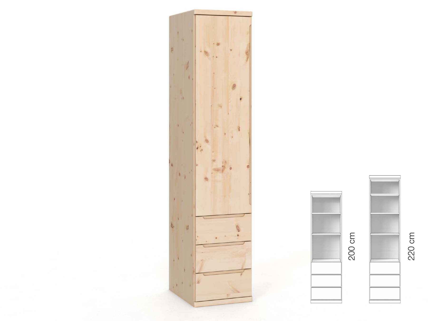 „Valentin“ holt das Beste der Alpen direkt in Ihr Zuhause. Dieser Kleiderschrank wird aus sorgfältig ausgewähltem, massivem Zirbenholz gefertigt. Mit seinem wohltuenden Duft, der eleganten, abgerundeten Optik und der individuell anpassbaren Inneneinrichtung setzt er stilvolle Akzente. Wählen Sie aus fünf Varianten mit Schubladen, Einsätzen, Kleiderstangen und höhenverstellbaren Fachböden. Der Schrank mit Flügeltüren ist in zwei Höhen sowie mit 1 bis 6 Türen und verschiedenen Griffvarianten verfügbar.